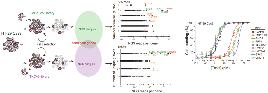 圖1. CRISPR/Cas9介導的全基因組敲除篩選發(fā)現(xiàn)與TcsH作用相關的宿主基因