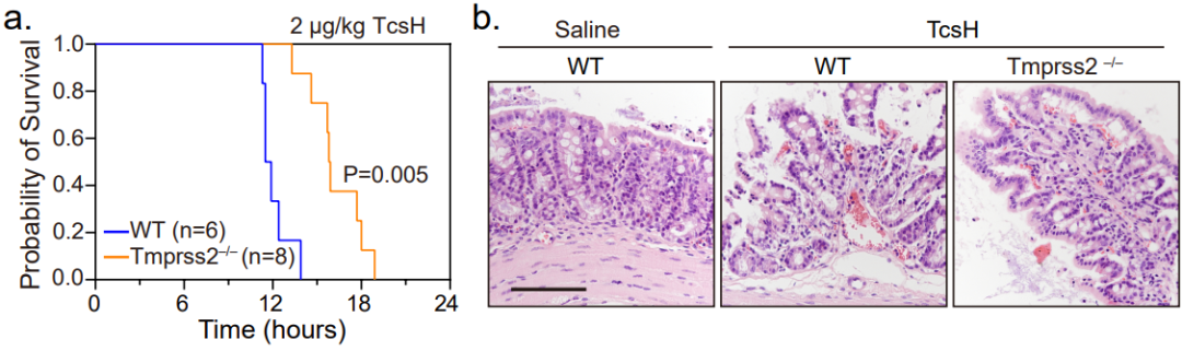 圖5. 小鼠模型顯示TMPRSS2 是TcsH重要的病理相關受體