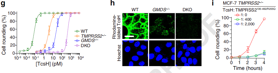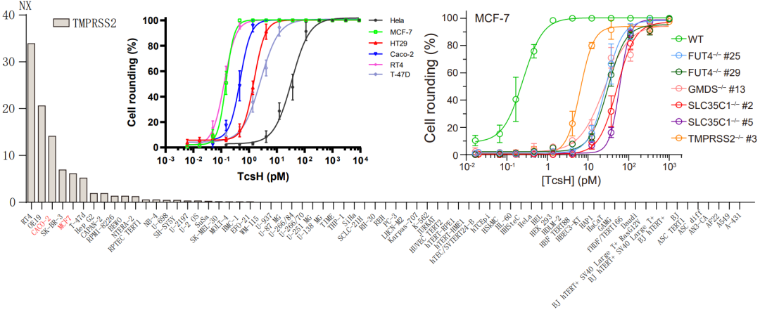 圖3. TMPRSS2 高表達的細胞展現(xiàn)出對TcsH的高敏感性