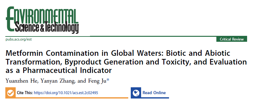 He YZ, Ju F* et al. 2022. Prevalence, production, and ecotoxicity of chlorination-derived metformin byproducts in Chinese urban water systems. Science of The Total Environment, 816, 151665.